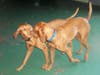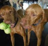 Interesting tidbit about the Vizslas: after World War II when Russia took control of Hungary, it was feared that the breed would become extinct. Luckily the Hungarians took control of the situation and smuggled some of the dogs to America and Austria. Thank goodness the Hungarians took action, because my day is not complete without seeing these two knuckleheads.