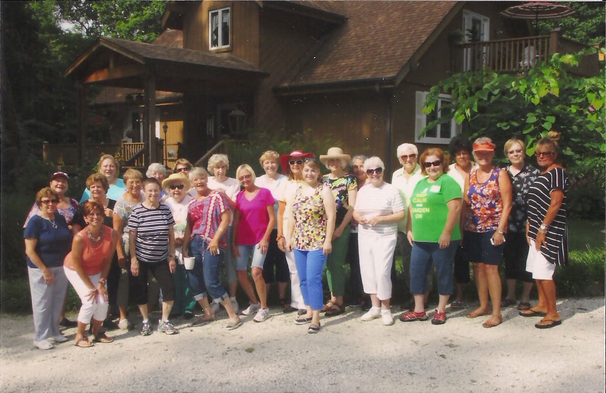 The club wrapped up the tour with a meeting on Loisβs brick patio, just before the rain chased us away.Β A lot of hard work went into each garden, and the club recognizes and appreciates the time spent!