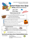 Join us at the inaugural Rotary Floats Your Boat: Wacky cardboard boat adventure July 4th 10am β 2pm at Weldon Spring Park!Β Use your imagination and create a floating masterpiece by following some simple rules and having lots of FUN!Β Registration opens at 9:00am so get there early.Β Boats will be raced in βwavesβ by size category: dinghy, pontoon, yacht, or cruise ship.Β Use your smartphone QR code reader here to check out all the details: