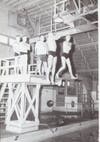 But the most interesting thing you do at the pool, is simulate jumping off a sinking ship. They have a tower at the side of the pool (see the pictures above for views of the "old days" and "nowadays".) You have to jump off, and swim to the other side, and climb out. Keep in mind that the tower is about eight feet above the floor, add two feet from floor to water, and five or so feet from your feet to eyeballs. So the first time you step up to the edge, it is a bit scary. (I always tried to jump out as well as off so when I came up from seven feet or so, I was part way across. Most people jumped, some had a little boost from the instructor, and some just refused to go. (Eventually they had to do it to graduate.)