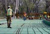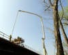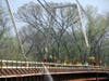 Demolition of the bridge took several months as unusually high river levels kept workers from tearing the span down. Rain then became a culprit as the project moved into the colder weather of winter, preventing constuction crews from pouring concrete. High winds were the cause of the most recent delay as construction of the bridge deck was anticipated to start last Tuesday. But the winds that day would have made operation of the concrete pumps hazardous, according to city officials. The pumping trucks are used to pump cement from trucks below the bridge and up and over to the bridge deck. The dangling arms of the pump would have been unwieldy in the winds.