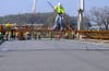 Workers were expected to finish pouring cement Monday to build the roadway of the new bridge, linking Sunset Hills and Old Towne Fenton.