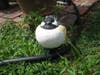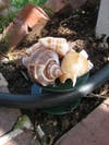 Dry test your items first to be sure you like the way it looks. I used 4 to 5 seashells per hose guard. The clay turtle filled out the top of the guard nicely, as did the resin chickadee. Place a reasonable amount of your glue on the bottom of the item you wish to decorate your hose guard. “G-6000” is great because it doesn’t set up immediately. You’ll appreciate the fact that you have a sufficient amount of time to fiddle with your items.