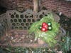 PINE ROPING USE #3- Decorate your hanging baskets! I have 2 nice wire hanging baskets.  Obviously, whatever was growing in the fall was dead. I cut about a yard for each basket and wound it around the outer edge of the basket. The other dozen plastic ornaments that I found in the basement were wired together and placed in the center of the basket. I think it resembles a large bird nest with red and green eggs!