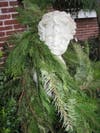 PINE ROPING USE #6- Give your garden statue a shawl. My concrete statue looks dressed for the season with a yard or two of pine roping. It keeps the winter chill away!