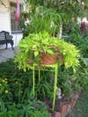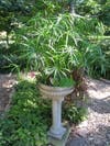 BIRDBATHS AREN’T JUST FOR THE BIRDS! Judy has a real knack for putting together interesting plant combinations. One of my favorites is a tall, columnar birdbath that is filled with interesting plants. A “King Tut” Papyrus is the center of this creative collection of green plants. Another birdbath holds a large, thriving Boston Fern. If you have a birdbath that won’t hold water, you don’t have a broken birdbath, you’ve got a planter!