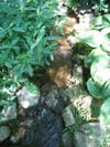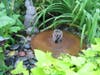 A WATER FEATURE: Judy has the most peaceful, serene creek in her back yard. The drop in elevation is minimal, but it’s enough to release the most tranquil, soothing sound. Sitting on Judy’s back patio also allows you to see hear the tiered fountain that her husband, Jeff maintains. Jeff enjoys picking out the perfect plants, overwintering them in the basement of their home. I have a water feature that allowed me to use one of my favorite collectables- grindstones. I happened to pick up a gardening magazine one day, and on the cover were instructions on how to assemble a grindstone fountain! The next day I was in the back courtyard, digging away. Unfortunately, the spot I chose had remnants of an old tree stump. My ax and I spent the next 3 hours digging the rest of the hole, but it was worth it. I set the basin, leveled it, and added the grate and then grindstone and rocks.