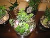 We used 3 to 4 plants per terrarium. The best arrangements are those that have a nice contrast in color, texture and shape. Some great plants for terrariums include: Swedish ivy, Bird Nest Fern, Miniature palm, most varieties of Ferns, tiny varieties of African Violets, and miniature Cyclamen.