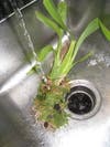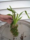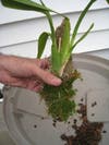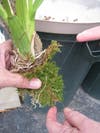 George and I found that the best looking finished specimens had a large piece of moss on the roots and a smaller piece of moss behind the plant.Â