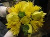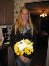 We began with some yellow “Pom-Pom” Mums and added a few of the pale yellow Roses. Perhaps some Tulips would lend an interesting element to the bouquet. The more we tried different combinations, the more Megan realized that she wanted the bridesmaids’ bouquets to be simple.