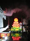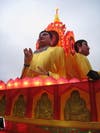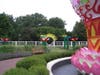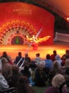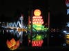 My suggestion is to make your first trip to the lantern display at night. Walking in and seeing all the brightly colored lanterns au natural lends an air of mystery when the lights go on at 8pm. As darkness crept in, visitors kept checking their watches, not really knowing what to expect when the magic hour arrived. Meg and I happened to be on our way to the Kemper Center and watched the Four-Faced Buddha light up. It was insane! Lights swirled in a pinwheel fashion, and the interior of the lantern lit up. We stayed a minute, then hit the ground running to see the Chinese acrobats preform. A tiny woman spun a blue and white urn with her feet, sending it spinning and rotating in all directions. As quickly as she started, she was given a red table to spin. She kept it moving clockwise, counter clockwise, and then flipped it off her foot to the gentleman nearby. After that feat, two men used each other as a jungle gym and proceeded to amaze and astound the crowd. As they finished, clapping, hoots and whistles filled the air. That was our cue to find the closest lantern display!