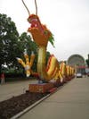I love Bottlebrush Buckeyes and the grove at MoBot is among the best. Numerous smiling moons lined the pathway. They looked kind of like a jack-in-a-box, but with jovial crescent moon faces instead of a clown. Each display was wondrous, unusual, colorful and outstanding. I won’t describe all of the lanterns, I am going to describe my favorite displays of the night. They’re the “Porcelain Dragons.”