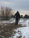 The trolley drives around eagle territory, full of people who want to see eagles. And, the people DO see eagles. The guy who leads the tour pulled the trolley off the road numerous times to show the group where the eagles were. By following him we saw an eagle sitting on the frozen waterway. He also took us through a small field to view an enormous nest.