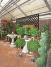 The gift shop was doing a brisk business, and, even in the rain, customers were perusing the garden statuary (25% off) outside. I even spied a silver Christmas tree adorned with turquoise ornaments sharing the same room as the outdoor fountains.Â