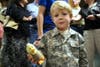 Hundreds of family and friends—many holding signs and balloons—waited anxiously for the return of their solders from Afghanistan Saturday afternoon at the . The Missouri National Guard unit had arrived at Lambert Airport around 11 a.m. Saturday morning and was then bused to the church, where they waited out of sight in another room. The crowd burst into applause when the soldiers filed in and took their seats.