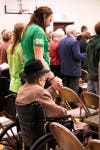 Though students at Kennedy Catholic normally attend Mass in dress uniforms, Friday was a little different. The school's boys' soccer team qualified for state playoffs the week before and the first game was immediately after Grandparents' Mass. In preparation for the big game, school uniforms were temporarily traded for school spirit garb of green and gold. Bolesta said several grandparents were surprised to see the students dressed so strangely this year.