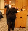 Attorney Patrick Gunn's family surprised him with an appearance at the board meeting to help board members and residents celebrate Gunn's 35 years with the City of Manchester.Â