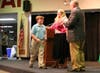 Kamran Winschel, a fifth grader at , received his "Hockey Dreams" grant from another such fund, the Jason Johnson Memorial Fund. Jason Johnson was a football player who planned on becoming a social worker after college. His family set up the fund after he passed away, providing grants to students with interest in sports or social work. His mother was present at the ceremony Monday night to present Kamran with his hockey grant.