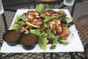 Having stopped in several times early in the day for breakfast, my husband Ryan and I were eager to try out their lunch and dinner menu. Kayak’s offers quite a variety, including many dishes with ingredients that aren’t found at your typical locale. I was intrigued by a number of their sandwiches, but in the end we ordered the Cyprus salad and the Greek pizza. The Cyprus salad was ordered primarily because I was impressed by a few of its toppings, namely the grilled Halloumi cheese and dried figs. Like I said, more exotic ingredients than I expected, and likely the reason for the $12 price tag. Though I find that price a little steep for this type of place, the large size and unique combination justified the price.
