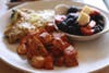The frittata was one of several egg dishes offered on the menu, each a different countryβMorocco, Spain, France and Italy. The Italia, which we ordered, included asparagus, mushrooms, asiago and truffle oil. Although the egg dish was good, it was the patatas bravasβfried potatoes in a spicy Harissa sauceβthat stole the show. These arenβt your standard breakfast potatoes!