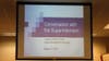 Wednesday Night at the McNair Administration Building, gave parents a status report on district activities, ranging from school renovations to the status of the district accreditation. This was the second of two Conversations with the Superintendent this academic year.