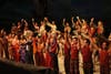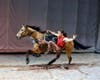 The riders hang from hurrying horses at seemingly impossible angles, such as off to the side and leaning backwards over the horse’s rear end. They straddle two speeding steeds while standing and leap from a running horse’s back over a bar and back onto the horse. Meanwhile, a troupe of talented tumblers on the ground and suspended in air spin, twirl, flip and pirouette in moves choreographed to the actions of the horses and riders.