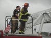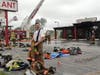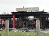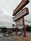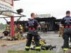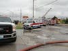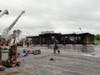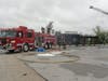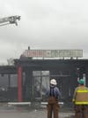 Once the fire was under control, Watkins said, they would bring in a trackhoe to tear off the front of the building and coat the rear of the building in a foam blanket before beginning an investigation into the cause. Six large air-conditioning units on the roof collapsed into the dining area and hampered firefighters' efforts.