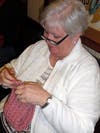 Michael Nilson, of Alton, Ill. sat in the back of the room at Denny's with his wife, Nancy, who was busy knitting as the balloonists whooped and joked and created elaborate balloon designs. Michael, who sports a long white beard, spends a lot of time during the Christmas season portraying a certain North Pole resident. As a balloon artist, though, he says he's just a beginner.