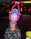 Isabel Gibbs, 6, of Lake St. Louis, proudly displayed a loose hat of balloons she made, wearing it much of the evening.