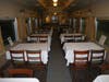 Ellison and volunteer workers spent three years putting the passenger car back in pristine condition. Lounge chairs and carpeting look new. In a nice touch, a hand of cards, along with a Coke bottle, coffee cup and several coins for ante, is spread on a table between two chairs. It looks as if passengers are just waiting to hear the "all aboard" call to take their seats. Blinds, windows, carpet, fabric for furniture – all had to be replaced.