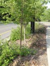 "The two species of shrubs we used are Rhus aromatica βGro-Lowβ (Gro-Low sumac) and Conteneaster (rockspray cotoneaster). Both of these are hardy shrubs that stand up to most of the brutal conditions of the site. Cotoneaster can be susceptible to several insects such as spider mites, aphids and certain lacebugs."