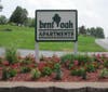 Bent Oak Entrance has a raised bed that includes ornamental grasses, Asiatic lily perennials that are spring bloomers and geranium annuals that will continue to bloom all through the summer. The sign alone will certainly let people know the name of the apartment complex but the addition of the raised bed and planting annuals and perennials adds interest and color that it otherwise would not have had.