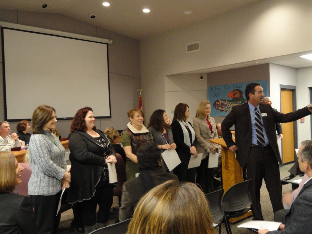 Karen and Denny Gladieux from Operation Food Search were called up to receive a certificate of appreciation from the school district.