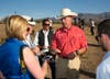 Zinke met reporters outside a rancher's home in Bunkerville, the hometown of jailed cattleman and anti-government icon Cliven Bundy about 80 miles northeast of Las Vegas. He didn't meet with any Bundy family members.