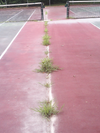 It is possible that the latest concentration on youth sports fields have resulted in a loss of focus on the other Town facilities. Years of postponement of investment in repairs and maintenance, while other “squeakier wheels get oiled” have now left facilities used by a great many of us needing some serious attention and funding. The pictures provided are an example of the problems that can result. The three tennis courts at Clark School, heavily used by many of all ages, are now filled with grass growing through weathered cracks in the surface. Other spots can cause tripping and rolled ankles, as roots start to push up. Icing and thawing have created a myriad of cracks in the surface. In short, they are a wreck and an embarrassment. I, for one, would be unwilling to run a youth tennis program on those courts in their current condition.