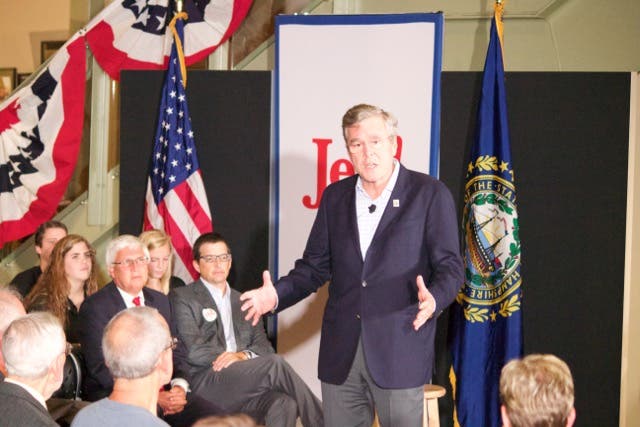 The former Florida governor holds town halls in Manchester, Rindge, Keene, Henniker, Hanover, New London, Laconia, Pittsfield and Derry.