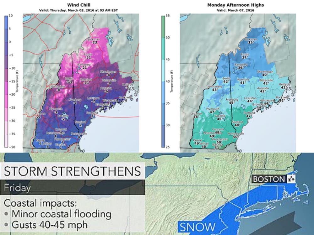 A coastal storm – with about six inches of snow – is going to extend across southern to northeastern Massachusetts but is not expected to move north. There might be some minor coastal wind gusts in Hampton, Rye, and Seabrook, on Friday night and Saturday morning.
