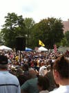UPDATE, 12:32 P.M.: Palin accuses mainstream media of mocking the Tea Party, drawing cheers from the crowd of "Run, Sarah, Run!"