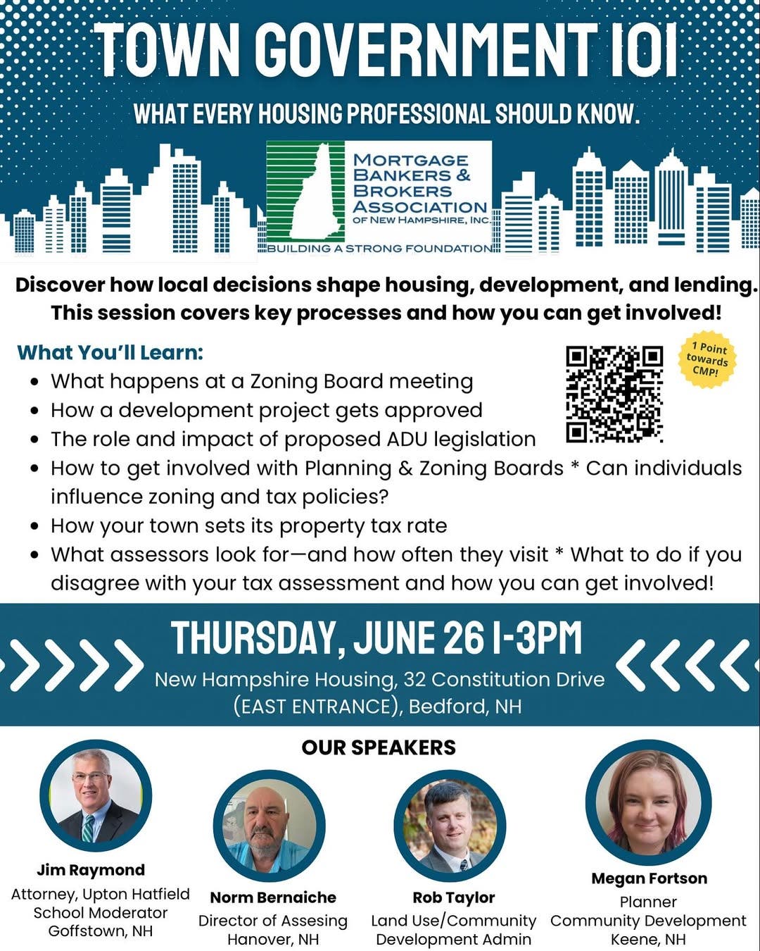 JUNE 26 in BEDFORD - The people running this forum said “This meeting is simply about understanding town government and how to get involved. We are not taking a position on local control of zoning or not.” It still may be interesting to attend as they will likely discuss how housing is approved and the workings of town meetings as well as the proposed impact of detached ADUs.