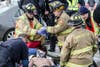 Two received life-threatening injuries, taken into custody after stolen vehicle pursuit.