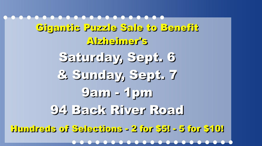 We have over a hundred different jigsaw puzzles, at this gigantic puzzle yard sale. Alzheimer's Central NH Walk receives !00% of Sales.