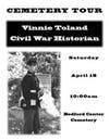 Visit the final resting places of Civil War soldiers who fought from Bedford. Learn about their battles, their defeats, and their victories. Vincent Toland is gets rave reviews for his accounts of the average soldier’s experience in the Union Army.
