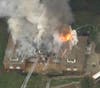 Captions: A screenshot from the WHDH-TV copter. Credit: WHDH, 7-News. Also, shots from the scene. Courtesy: American Red Cross.