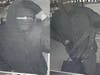 The suspect is white, about 5 feet, 5 inches tall, and was wearing all black – a mask, hat, hooded sweatshirt, pants, and gloves. The gloves, however, had lighter color cuffs.