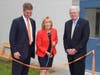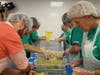 Captions: From left to right, Thomas Blonski, CEO and president of Catholic Charities NH, Gov. Maggie Hassan, and Robert Gossett, interim director of the NH Food Bank. Following the ribbon cutting ceremony and as part of Hunger Action Month, volunteers from Bank of America, Fidelity Investments, CGI Benefits Group and Freudenberg utilized the new clean room for a “Mac-Off” competition in which teams competed to pack as much mac-and-cheese as possible.