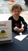 Elizabeth Sutton, age 4, of Manchester smiles as she makes her own bookmark at The Mall of New Hampshire’s Kidgits Book Blast on Saturday, March 7.