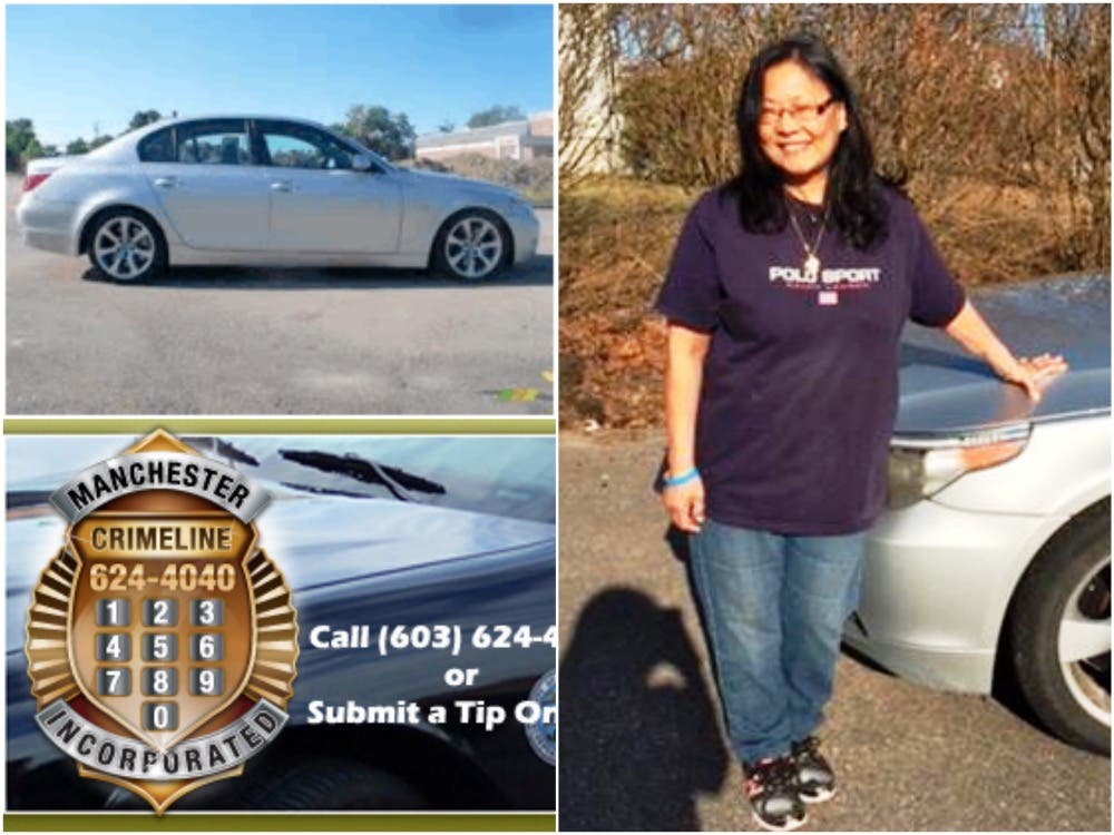 Sue Hutchinson, 57, of Calef Road in Manchester, has not returned home since that time. She may be operating a 2005 BMW 5-Series sedan that is silver.