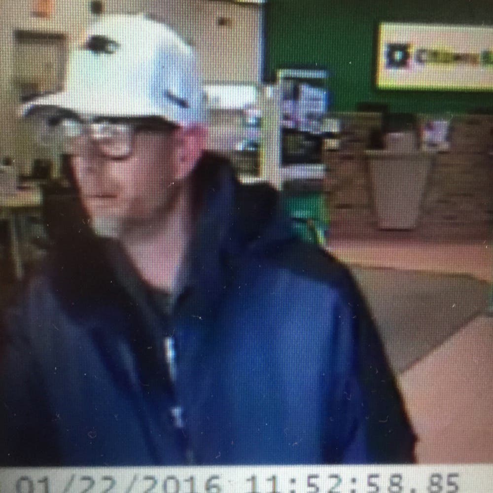 The suspect is described as white, 5-feet, 8-inches to 9-inches tall, with a slim build and a “5-o’clock shadow.” He was wearing a white Patriots hat, glasses with black rims, and a blue jacket.