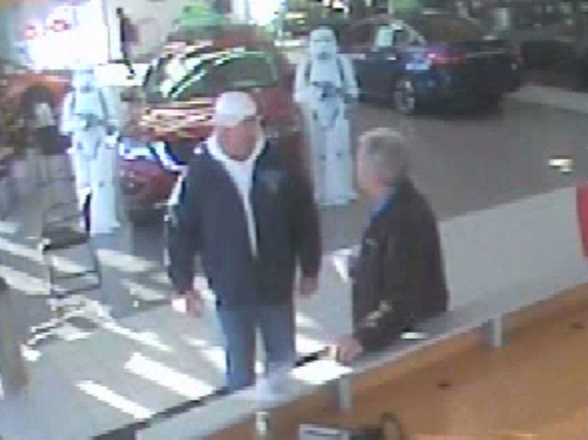 The information provided to the sales staffer by the man later proved to be false. The man was wearing blue jeans, a gray or white hooded sweatshirt, white sneakers, and a white baseball cap.