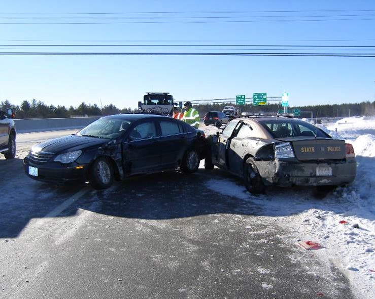 A few minutes after doing this, a Chrysler Sebring being driven by Kathleen Sudal of Merrimack, reportedly crashed into the cruiser, causing damage to the vehicle, and injuring the trooper. The trooper was later taken to St. Joseph’s Hospital in Nashua and treated for back pain. He has since been released.